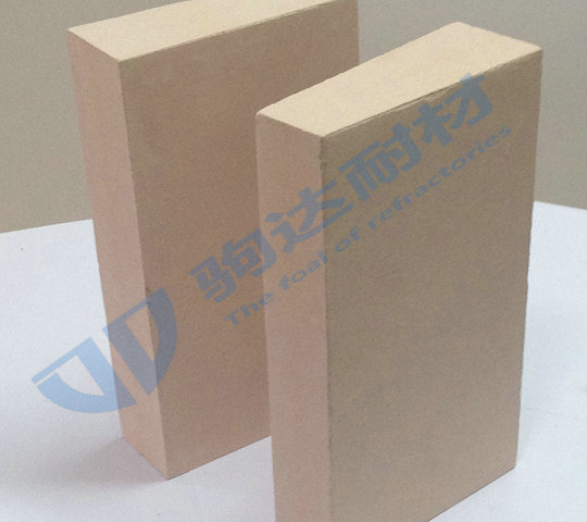輕質高鋁磚是目前高溫窯爐比較通用的隔熱耐火材料制品。生產工藝是采用高鋁礬土熟料加少量黏土,經磨細后用氣體發生法或泡沫法以泥漿形式澆注、成形,經1300~1500℃燒成,其氧化鋁含量在48%以上。主要用于砌筑窯爐的內襯和隔熱層,以及無強烈高溫熔融物料侵蝕及沖刷作用的部位。直接與火焰接觸時,表面接觸溫度不得高于1350℃。