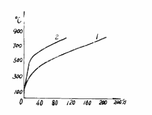 RJX-45-9裝有205.2公斤的鑄鐵模座的負(fù)載時(shí),試驗(yàn)曲線見圖3、圖4所示。爐溫由140℃升至800℃的加熱時(shí)間由280分縮短到120分,耗電量從189度下降到108度。