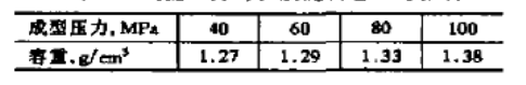 表1成型壓力對(duì)輕質(zhì)配料容重的影響