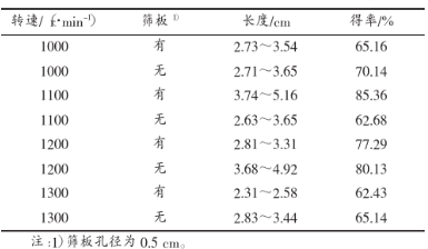 表2 打漿條件及打漿后纖維長度和得率
