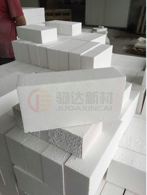 如果用空心球作骨料,用氧化鋁細粉作基料,用硫酸鋁、羧甲基纖維素溶液作粘結劑,可制成空心球磚。空心球大小適當搭配。氧化鋁細粉是用工業γ-AI2O3經1450℃煅燒、粉碎、凈化獲得的α-Al2O3,含Al2O3量大于99%,粒度全部小于0.147mm,其中小于5μm者占85%左右。結合劑的加入量為干料的5%的硫酸鋁溶液(質量分數為20%)和4%的羧甲基纖維素溶液(質量分數為3%);旌虾蟮呐髁蠞补嘣谀灸V,并置于振動臺上振動輕壓成型,獲得球體完整、分布均勻的坯體。坯體經干燥后,可根據不同使用要求而在1500~1800℃的不同溫度下燒成。制品的氣孔率為50%~70%,耐壓強度4~6MPa,熱導率3.3~3.8kJ/m·h·℃。1100℃~風冷的熱震循環大于15次,是一種既有強度又有良好隔熱性的耐火隔熱材料。制品的性能隨氧化鋁細粉的加入量及燒成溫度的變化而有較大的變化,大小球配比的改變對制品性能的影響不大。氧化鋁空心球磚的性能見表2。