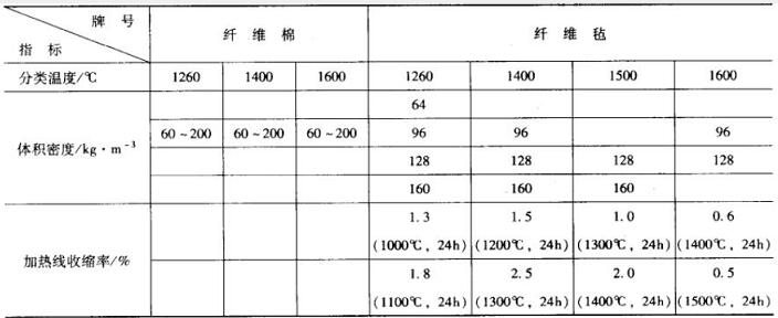 表4 耐火纖維棉 (毯)主要技術(shù)指標(biāo)