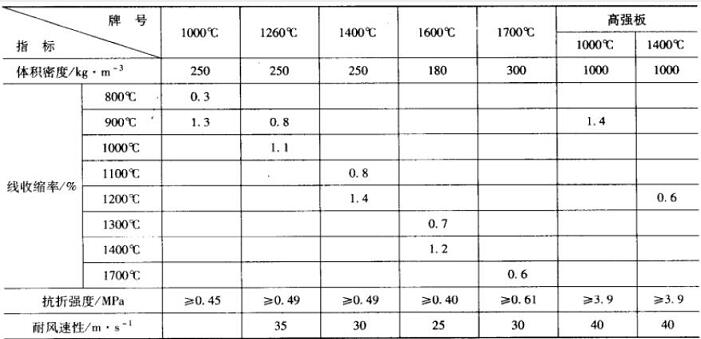 表3 耐火纖維板主要技術(shù)指標(biāo)